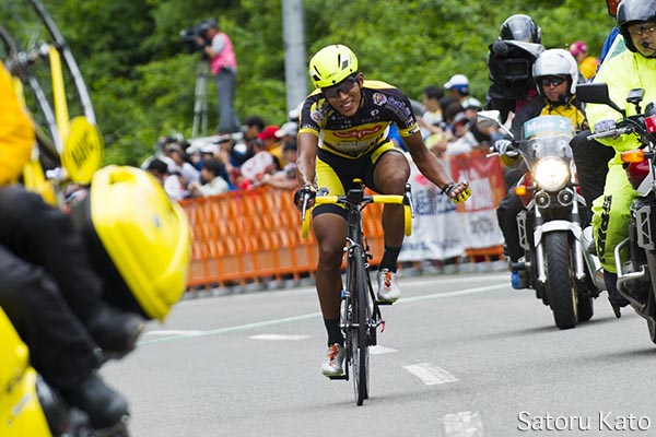 最後の登り区間に入り、3名の協調が解かれ、最後の勝負が始まっていく。3名がそれぞれに仕掛けるが、決定的な動きにならないまま残り1kmを過ぎる。そして最後に抜け出したのは佐野。残り100mを単独で通過すると勝利を確信し、何度もガッツポーズを繰り返しながらフィニッシュラインを越えた。