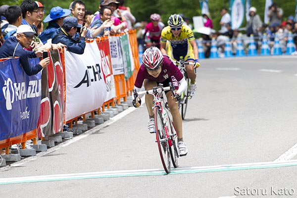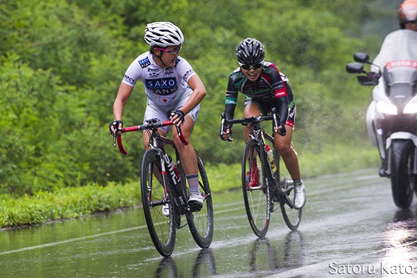勝負は残り3kmの登り。先行する與那嶺恵理(サクソバンクFX証券)との差は40秒。誰もが勝負はついたと思っていたが、萩原麻由子(ウィグル・ホンダ)だけは諦めていなかった。
