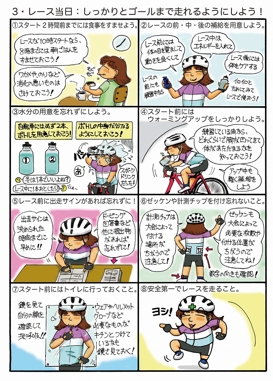 このパンフレットの裏面に掲載されている「トレーニングとレース心得」を分かりやすく図解したマンガについて、このインクルーシブ自転車レースのサイトからも無料ダウンロードが出来るように公開を開始しました。